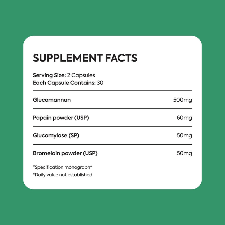 Glucomylase is one of several digestive enzymes that can break down these starches into glucose, which is usable by the body. This encourages smooth digestion and may help deter common digestive upsets such as heaviness, lethargy, bloating, gas and loose stools.