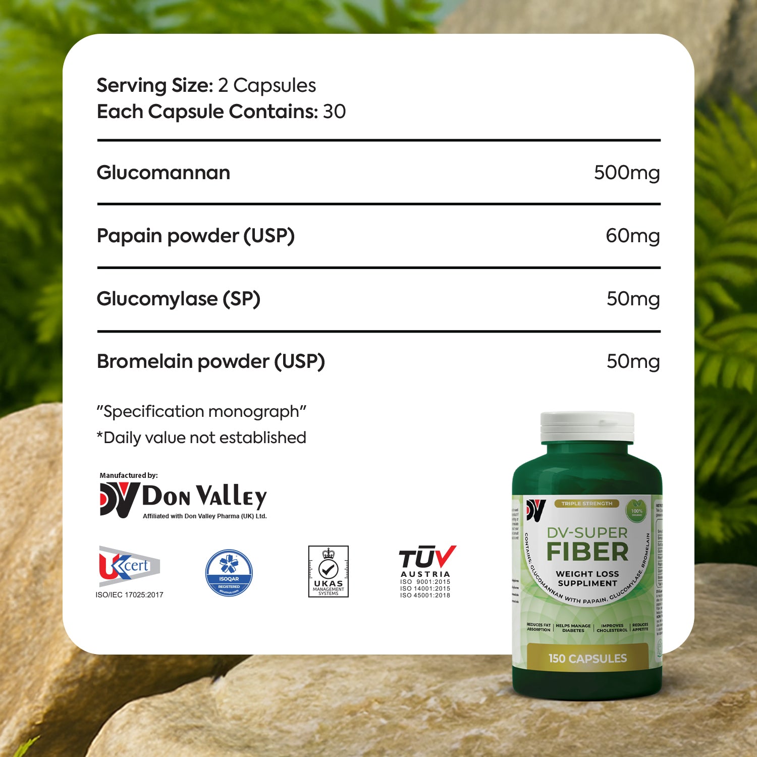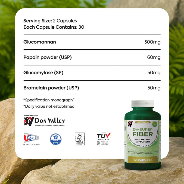 Glucomannan act synergistically and expand in the stomach sending a satiety signal to the brain making a significant contribution in weight management. Due to the enhanced viscosity the compound coats the fats and carbohydrates and limits their absorption thus reducing caloric intake.